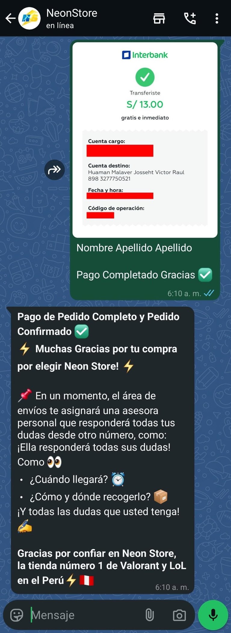 6 Toma una captura de pantalla y envíala al WhatsApp de NeonStore ✅